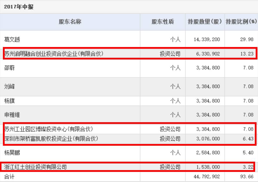 另外,自掛牌以來,上海凱鑫曾在2015年有過兩輪定增,合計募集資金5086萬元。據(jù)2017年中報顯示,上海凱鑫背后已經有多家機構股東身影,包括啟明創(chuàng)投、浙江紅土創(chuàng)投、深圳架橋資本和蘇州工業(yè)園區(qū)博璨投資。