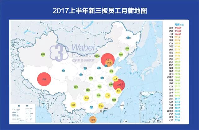 挖貝新三板研究院數(shù)據(jù)顯示,2017年上半年,全國新三板企業(yè)的員工月平均工資為8000元;同比增長7.9%。北京以1.14萬元的月工資位居第一。大金融行業(yè)的員工最賺錢,每月薪水達1.8萬元,同比增長10.2%,無論從工資額還是增長速度,都堪稱新三板之最。