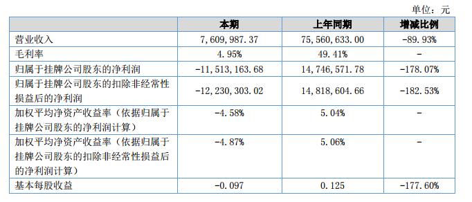 報告期內(nèi),公司實際完成營業(yè)收入761.00萬元,受行業(yè)訂單減少的影響及公司資金緊張不能按時供貨的原因,比同期收入減少89.93%。?