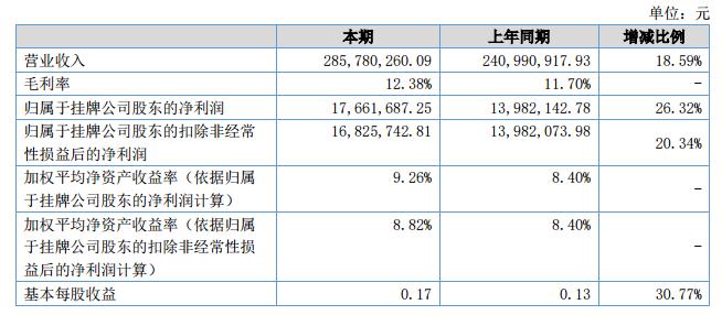 報(bào)告期內(nèi)公司完成營業(yè)收入285,780,260.09元,比上年同期增長了18.59%,實(shí)現(xiàn)凈利潤17,661,687.25元,較上年同期增長26.32%。?