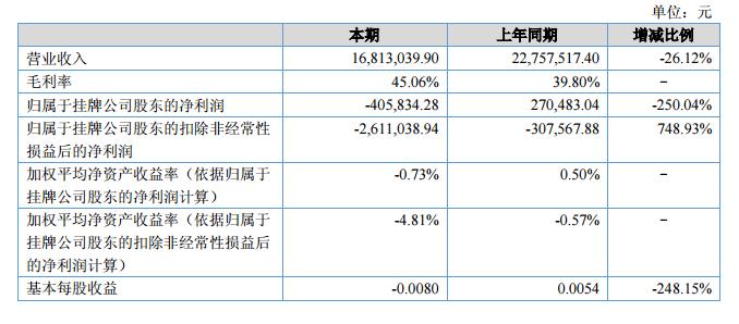 挖貝網(wǎng)9月11日,九博股份(證券代碼:872162)近日公布的2018年半年報顯示,截至2018年6月30日,企業(yè)實現(xiàn)營收1681.3萬元;歸屬于掛牌公司股東的凈利潤為-40.58萬元。