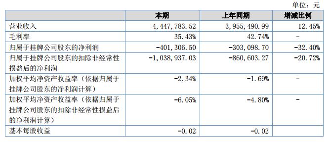挖貝網(wǎng)9月11日,鵬翔智造(證券代碼:872360)近日公布的2018年半年報顯示,截至2018年6月30日,企業(yè)實現(xiàn)營收444.78萬元;歸屬于掛牌公司股東的凈利潤為-40.13萬元。