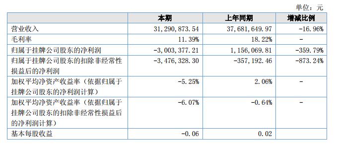 報告期內公司營業(yè)收入3,129.09萬元,與上年同期相比,收入減少639.08萬元,下降16.96%;營業(yè)利潤降低133%,實現(xiàn)凈利潤-300.34萬元,比上年同期大幅降低了359%。?